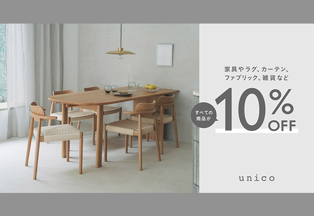自分らしい空間づくりがかなうライフスタイルショップ「unico(ウニコ)」ご優待